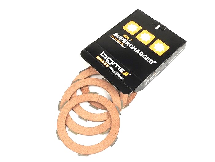 Manufactured exactly according to BGM specifications, they have managed to use a very high quality organic coating mixture which is pressure and temperature stable, but at the same time low-wear. All this combined with a very good grip so you always have the full torque on the rear wheel. Even with a very high spring force, the separation distance is short, because the material is not as soft and compressible as that of other manufacturers. BGM pro Lambretta pads can be used in all engines.