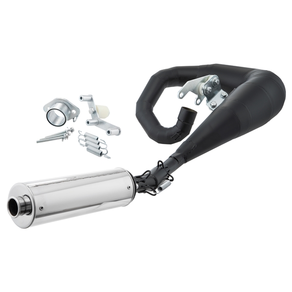 BGM PRO MZ30 Franspeed Expansion chamber for series 3 & Gp by Andy Francis Scooters. Designed for very high-torque figures low down in the rev-range. Comes equipped with all the features of the Franspeed exhaust systems in terms of easy installation, durability and long-distance qualities. The rear silencer is included. comes with oval stub