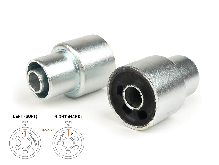 Both the installation side is marked with L (for left) and with R (for right), as well as the installation position (arrow on 12 h) is embedded in the silent blocks.