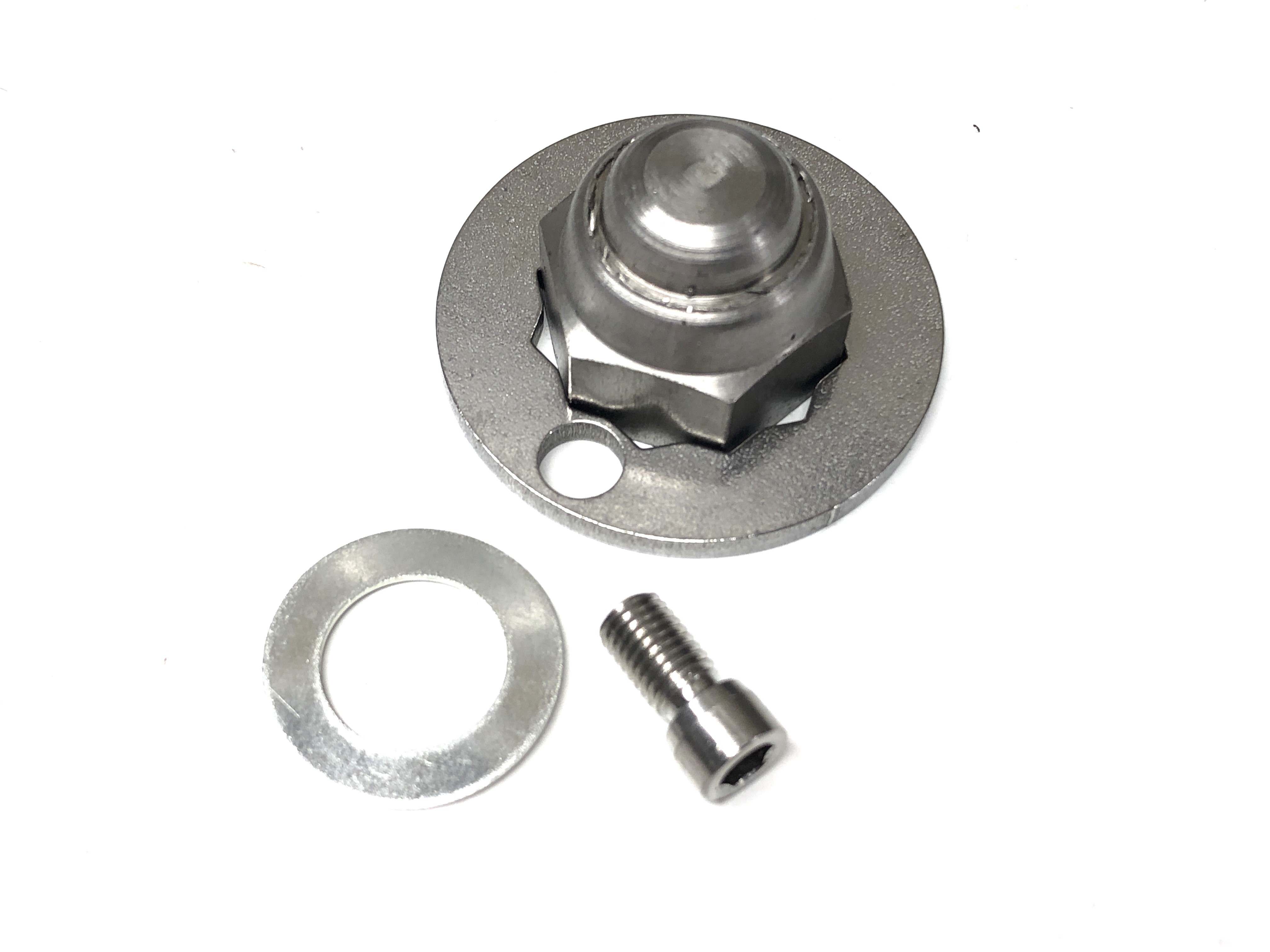 Rear hub kit in st/st..comprises of the nut,lock washer, 7mm allen cap screw for the lock washer (Italian...