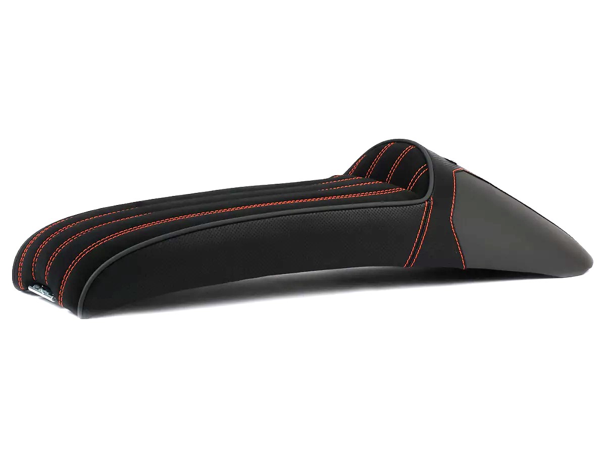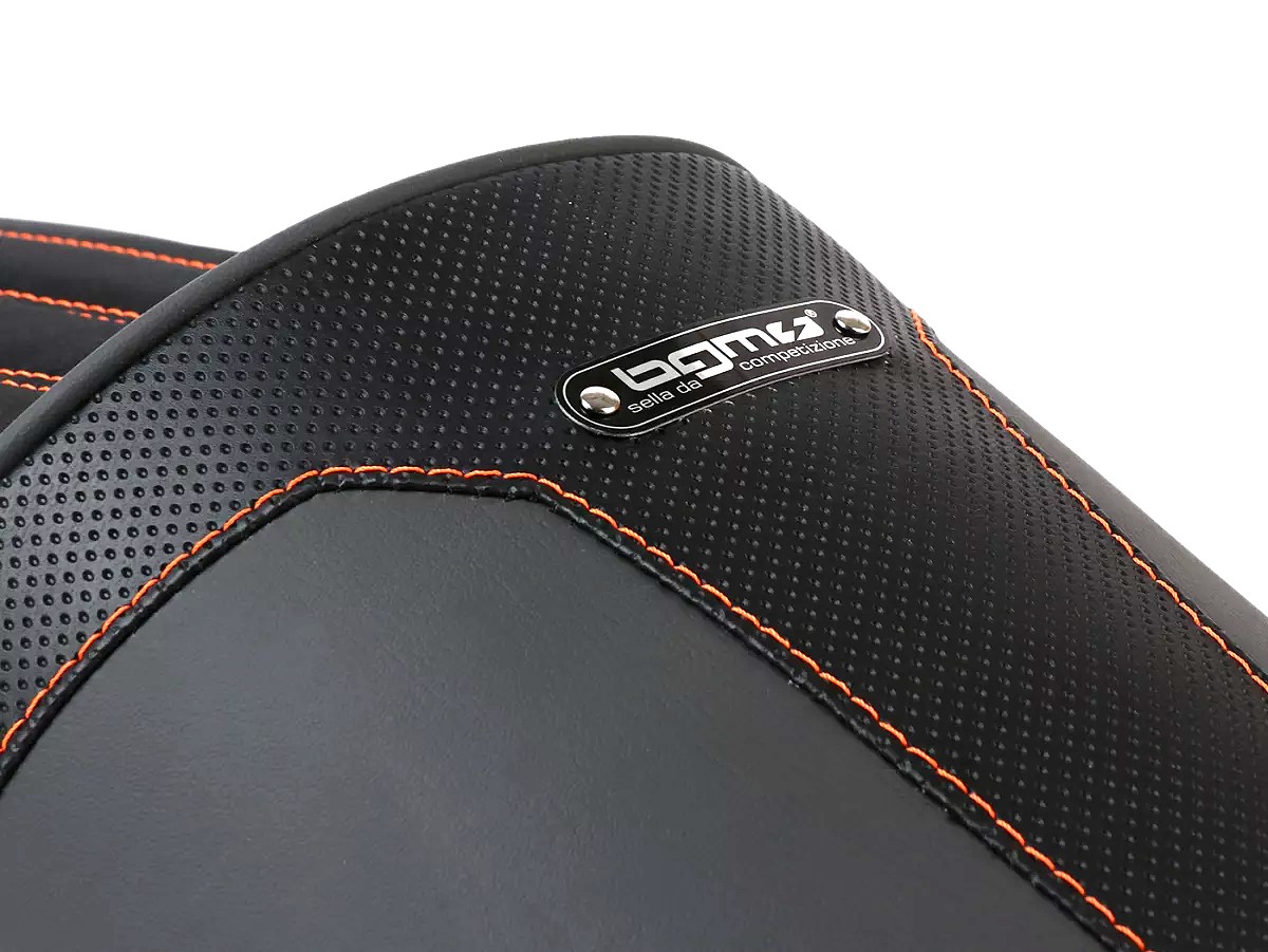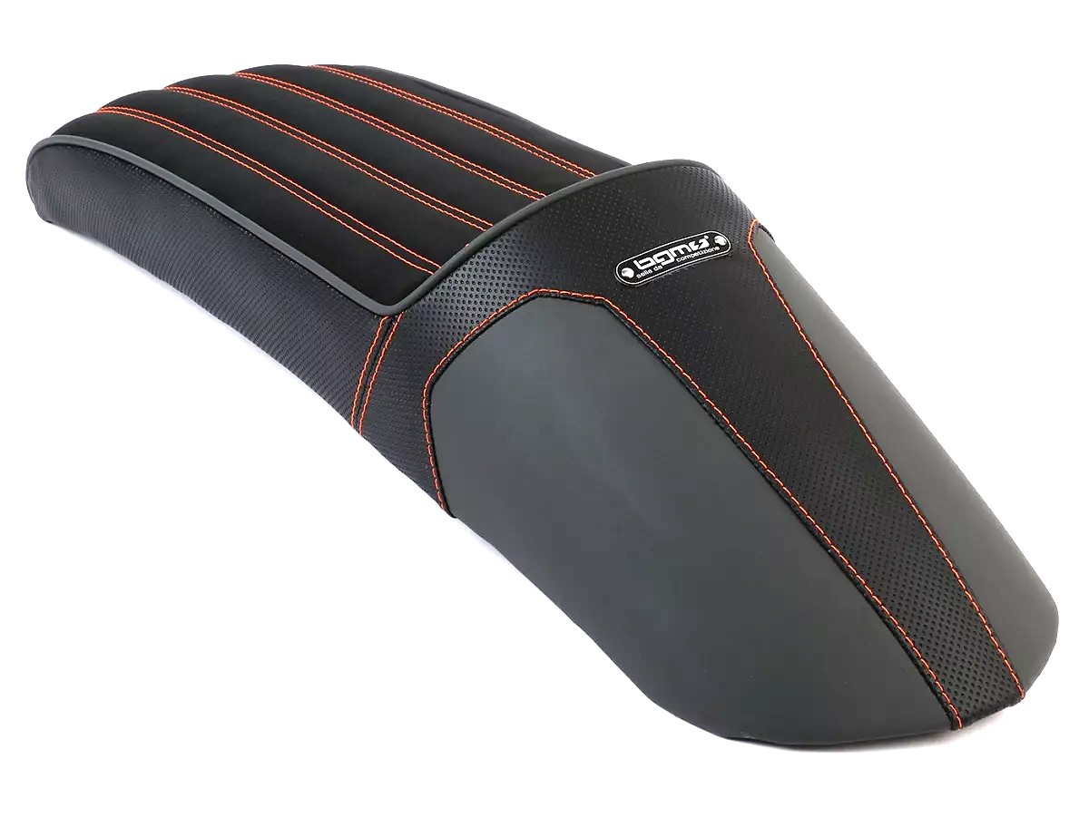 Stylish BGM PRO sports seat that combines the Ancilotti and slope styles. Suitable for Lambrettas of series 1-3, Li, LiS, SX, TV, DL, GP. A longitudinally stitched seat surface, grey piping and harmonious integration into the vehicle silhouette make the BGM a real eye-catcher.