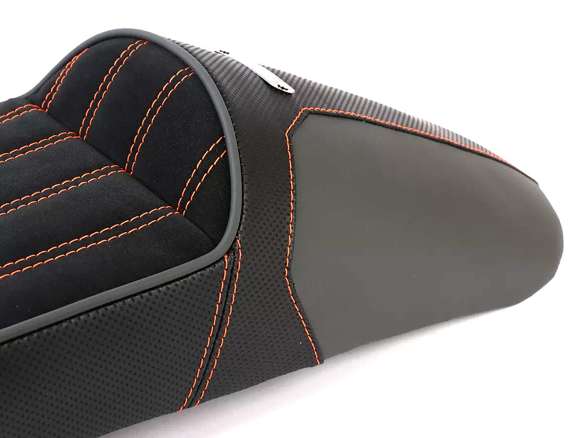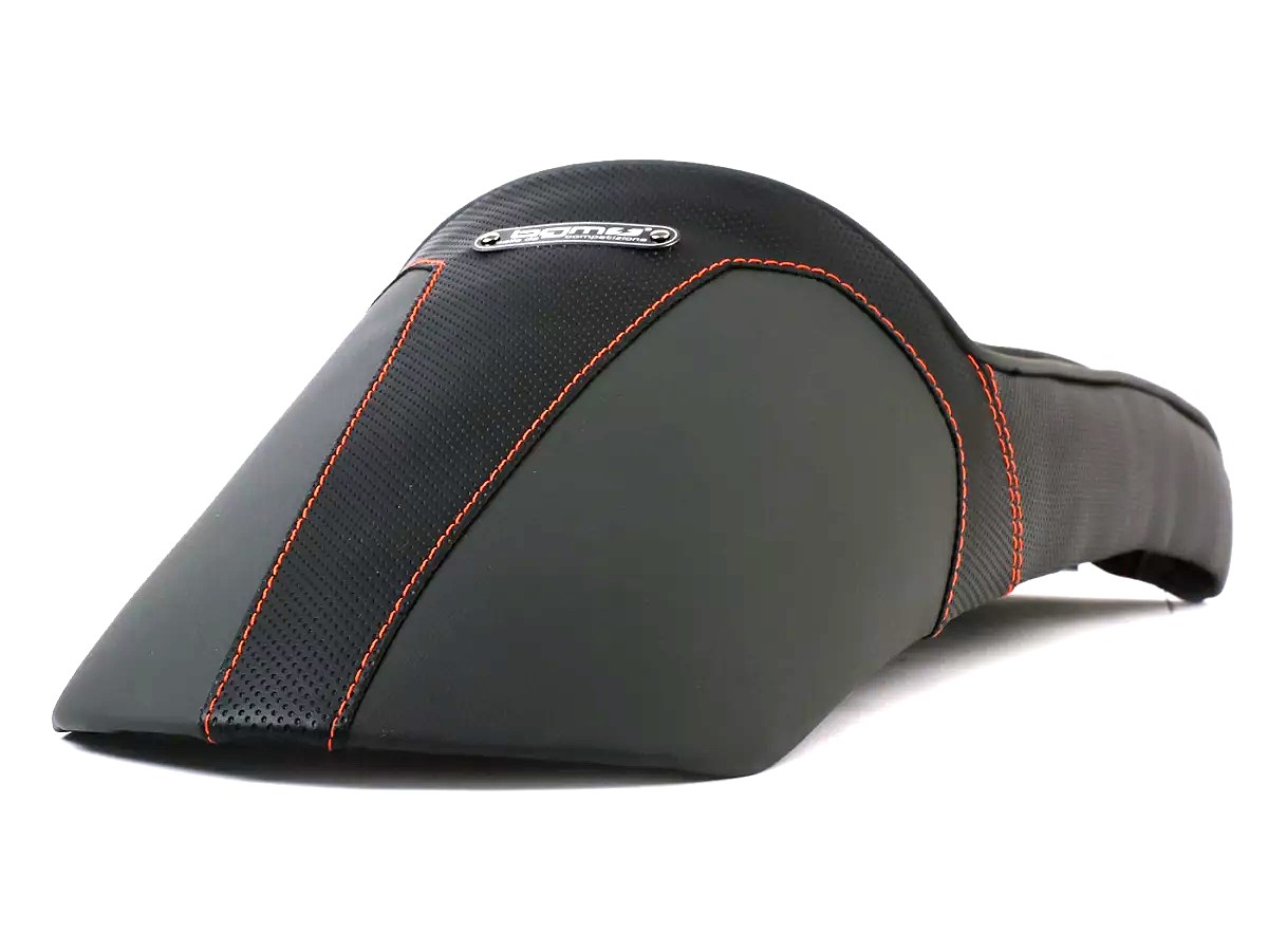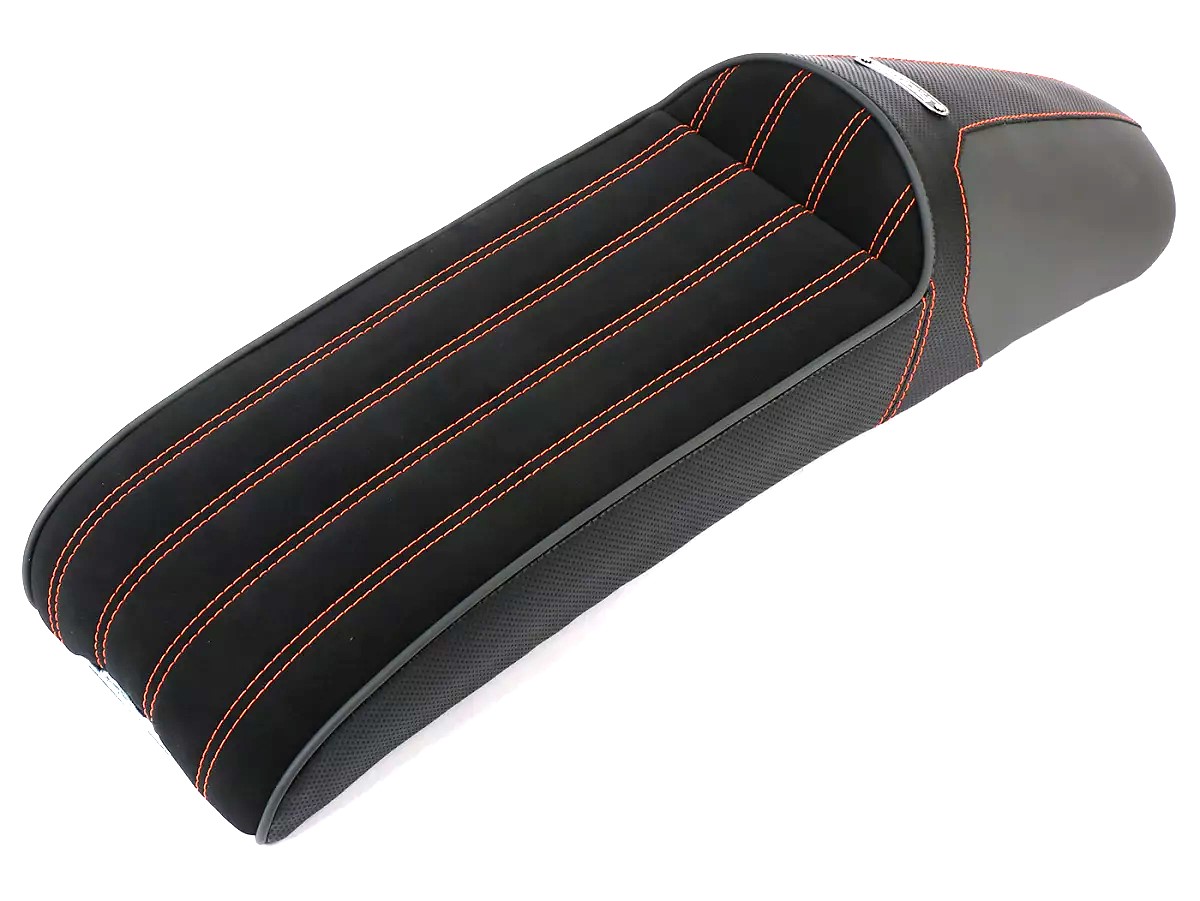Stylish BGM PRO sports seat that combines the Ancilotti and slope styles. Suitable for Lambrettas of series 1-3, Li, LiS, SX, TV, DL, GP. A longitudinally stitched seat surface, grey piping and harmonious integration into the vehicle silhouette make the BGM a real eye-catcher.