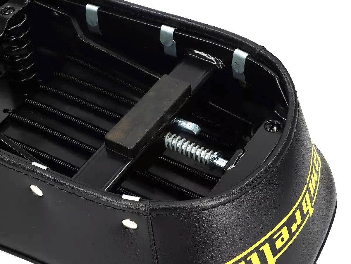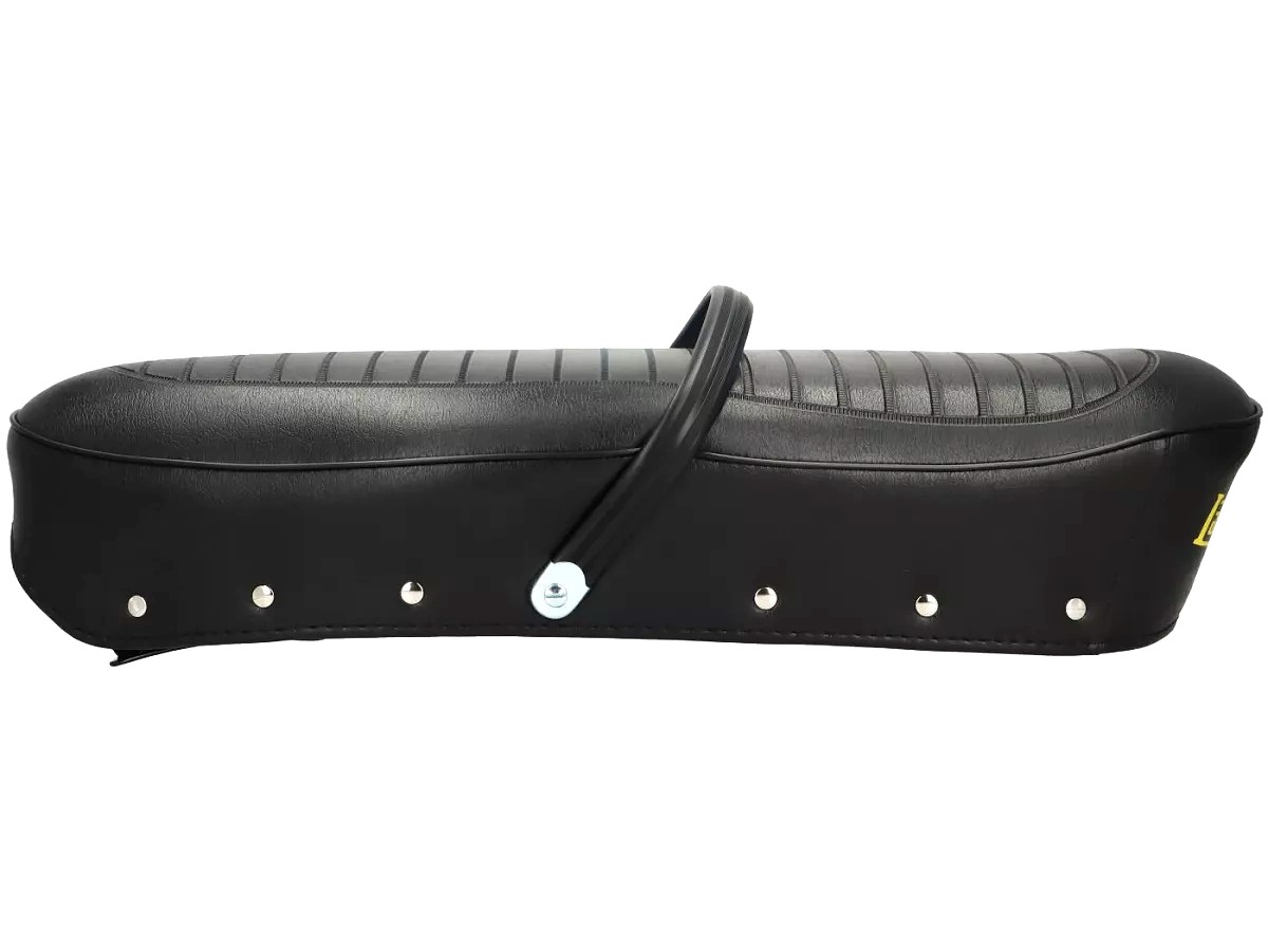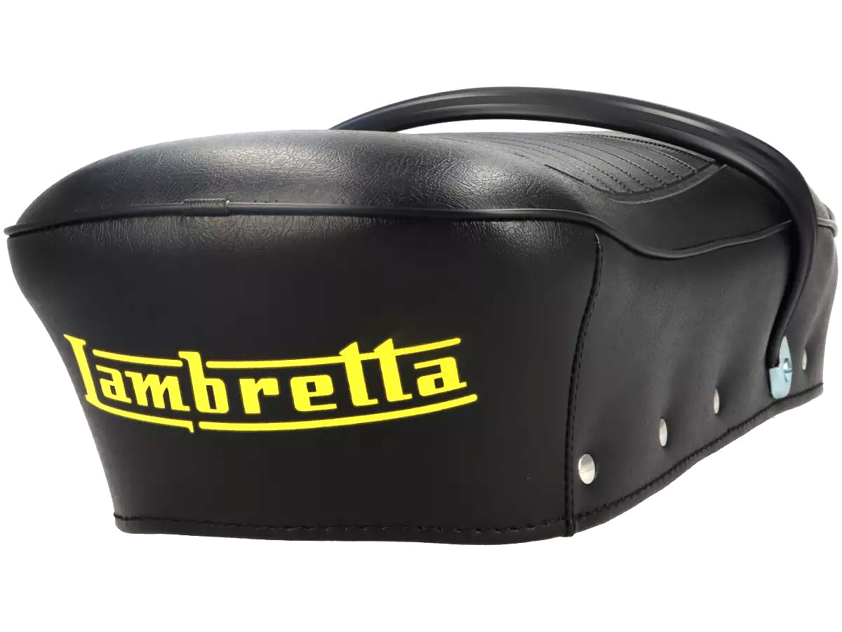 Complete seat suitable for all SIL Lambretta DL-GP models. It is a brand new product strictly “Made in Italy” . It has been manufactured using an original SIL seat in superb original condition as a sample. The top pattern is very similar to the original and the pressed stitchings along with the yellow Lambretta logo stamped at back make this an excellent copy of the original one. The top has been shaped by cutting the foam following exactly the sample that was used and the comfort is guaranteed. If your SIL GP hasn’t got the original look and you want it, this is for you.