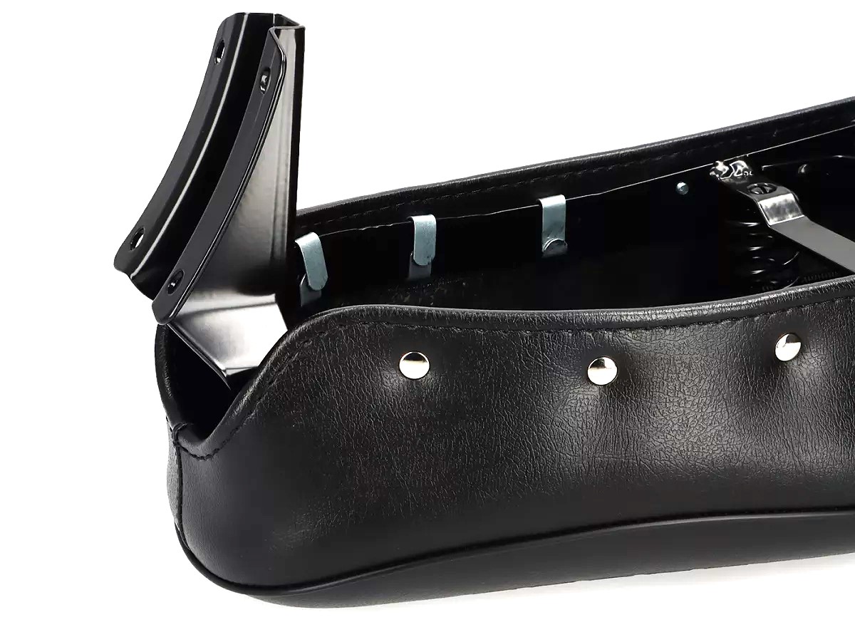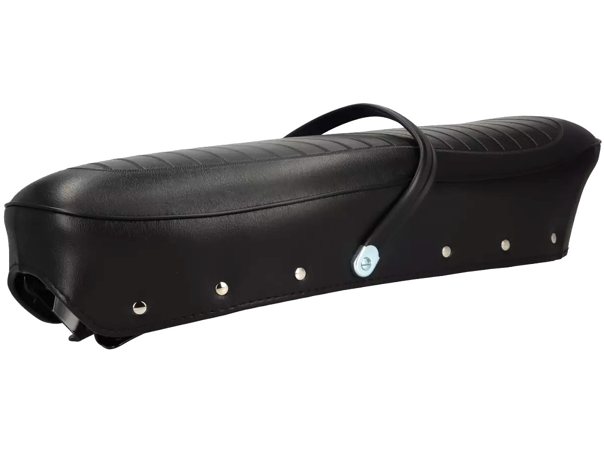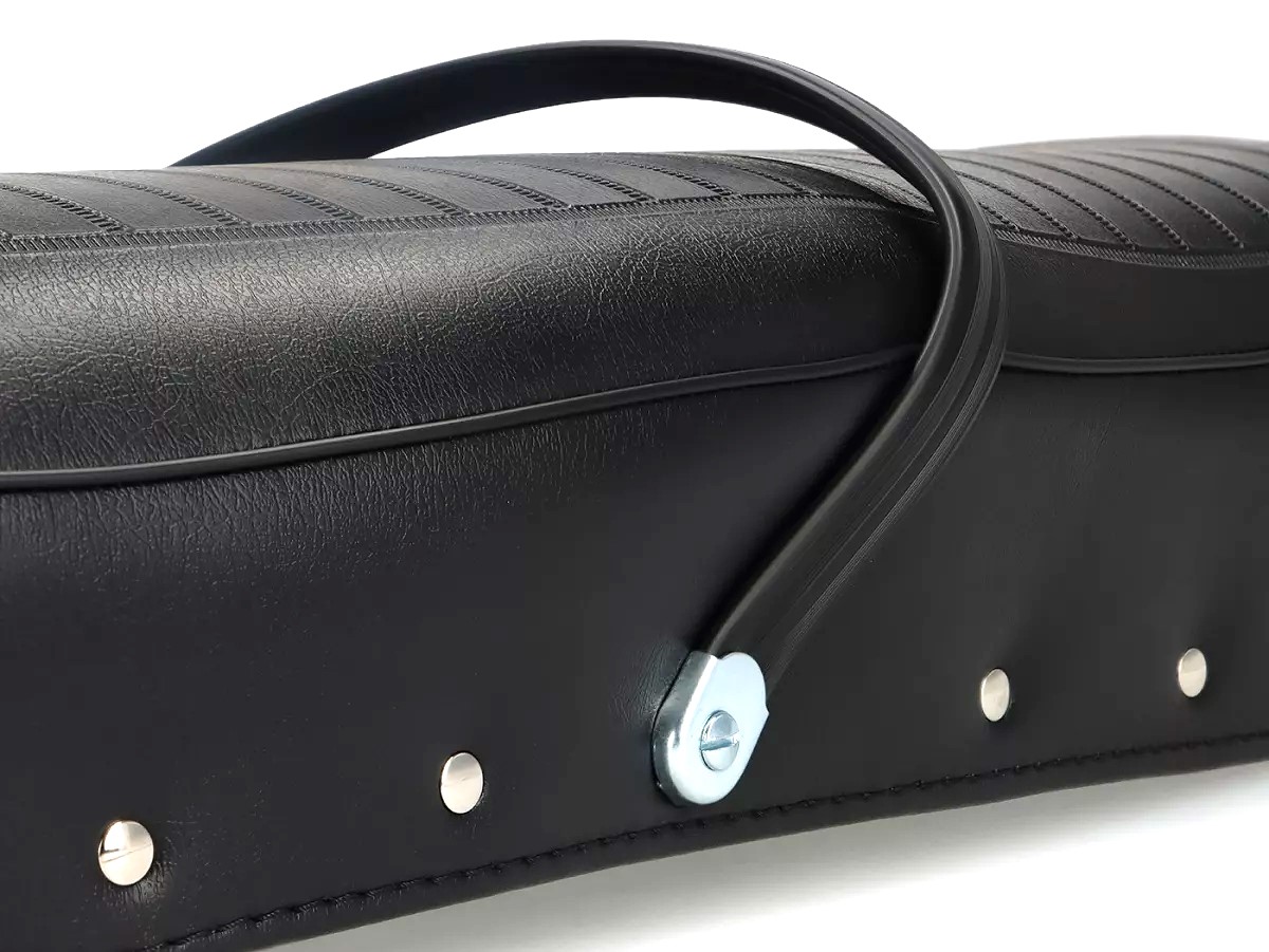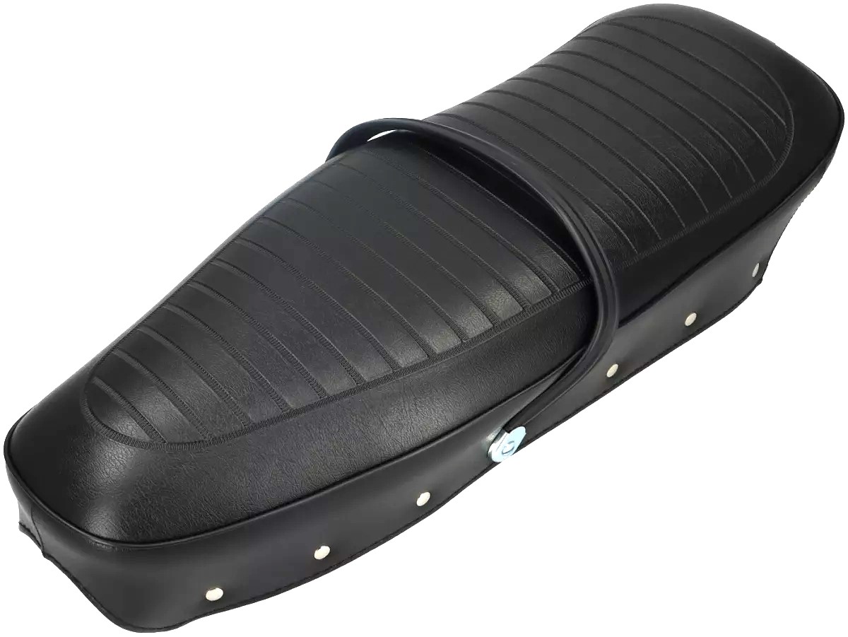 Complete seat suitable for all SIL Lambretta DL-GP models. It is a brand new product strictly “Made in Italy” . It has been manufactured using an original SIL seat in superb original condition as a sample. The top pattern is very similar to the original and the pressed stitchings along with the yellow Lambretta logo stamped at back make this an excellent copy of the original one. The top has been shaped by cutting the foam following exactly the sample that was used and the comfort is guaranteed. If your SIL GP hasn’t got the original look and you want it, this is for you.