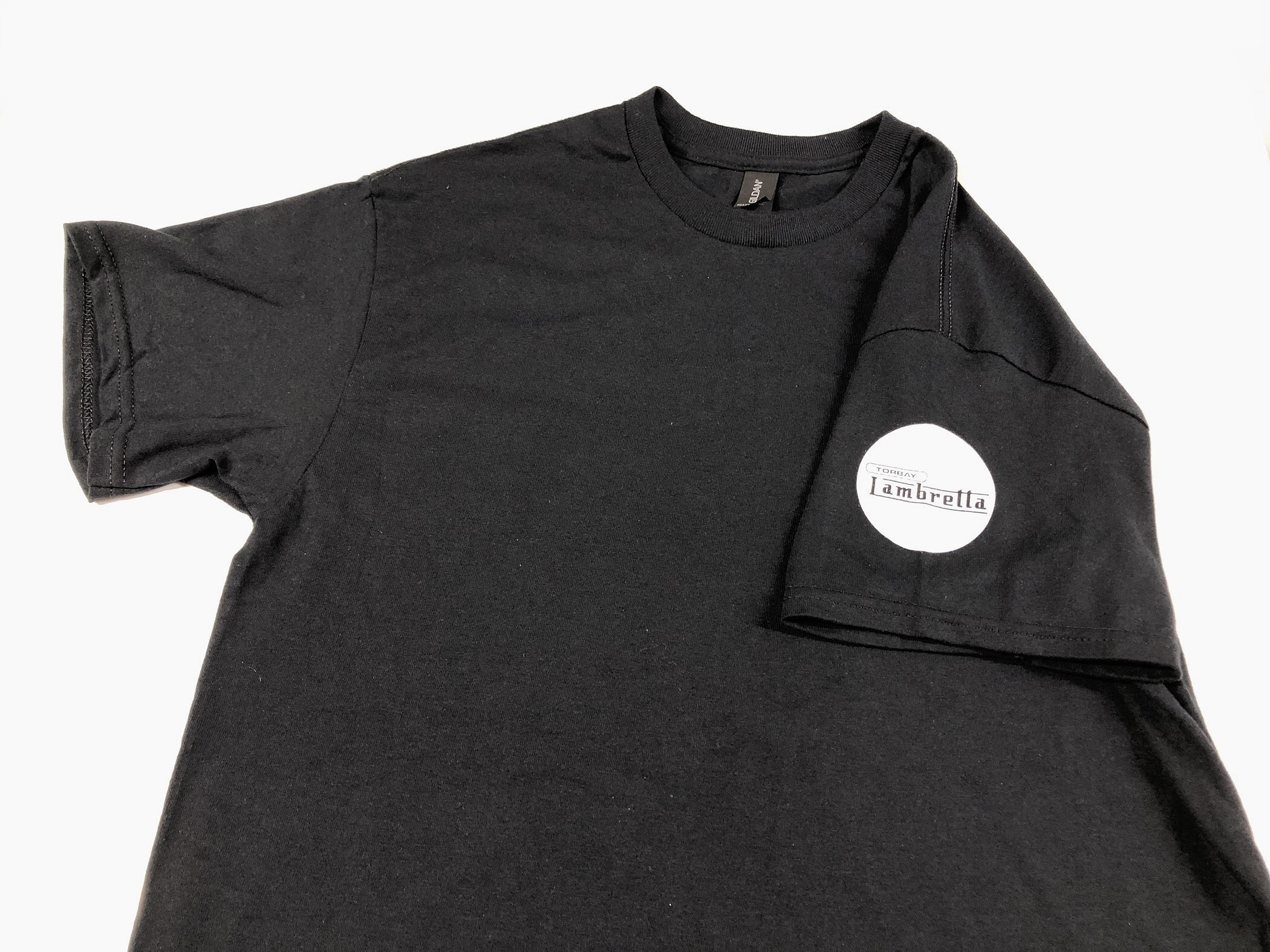 Black T Shirt with Torbay Lambretta logo on sleeve.