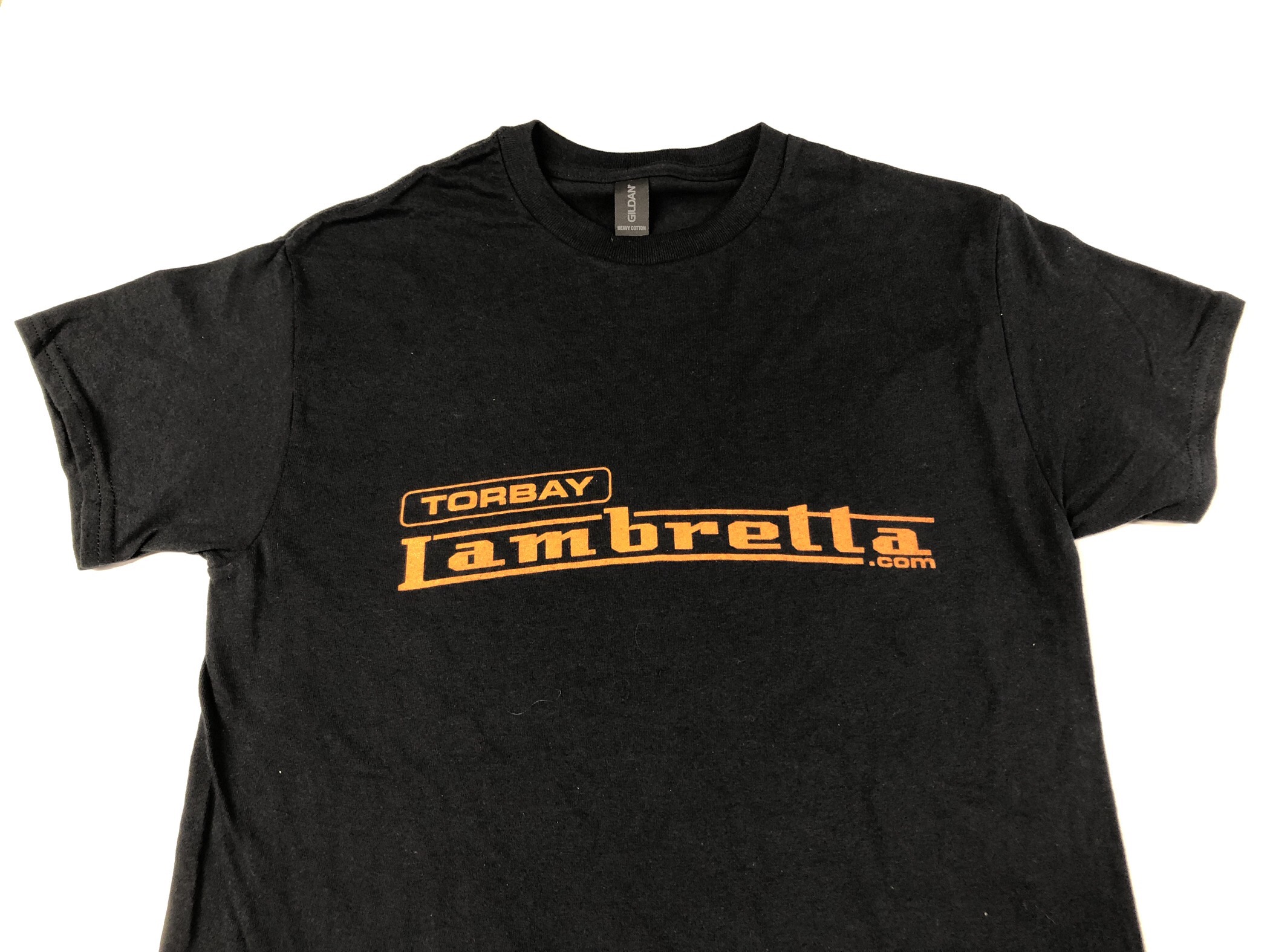 Black T Shirt with Orange Torbay Lambretta logo. size X-LARGE